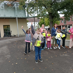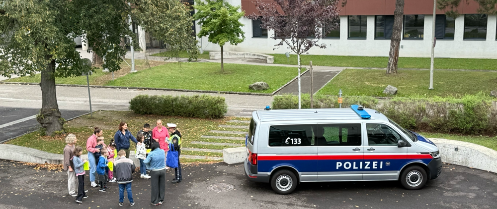 Im Rahmen der Verkehrserziehung besuchte uns eine Polizistin und erklärte den Kindern anschaulich, wie man eine Straße richtig überquert und welche Regeln es an Fußgängerampeln zu beachten gilt. Im Anschluss ging es gemeinsam nach draußen: Bei einem kleinen Rundgang durch die Nachbarschaft konnten die Schulkinder das neu Gelernte gleich praktisch anwenden. Dabei übten sie, wie man sich sicher im Straßenverkehr bewegt.