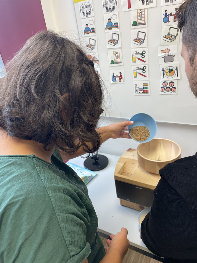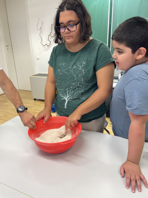 In der zweiten Woche ging es darum, den Weg vom Korn zum Brot kennenzulernen. Gemeinsam sprachen wir über die Getreideernte mit dem Mähdrescher, die Arbeit in der Mühle und die Verarbeitung von Mehl zu Teig. Anschließend durften die Kinder lebst aktiv werden: Mit der Mühle mahlten sie Weizen- und Roggenkörner zu frischem Mehl. Gemeinsam mit Wasser, Salz und Germ wurde ein Teig erstellt aus welchem dann Vollkornweckerl entstanden sind. Diese wurden dann schließlich gemeinsam verspeist. So konnten die Kinder nachvollziehen, welchen Weg Getreide zurücklegt, bis es als Brot auf unserem Tisch landet.