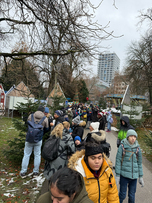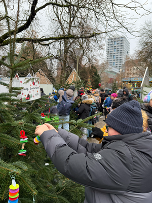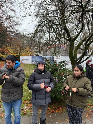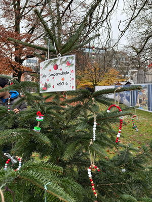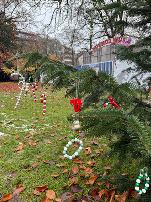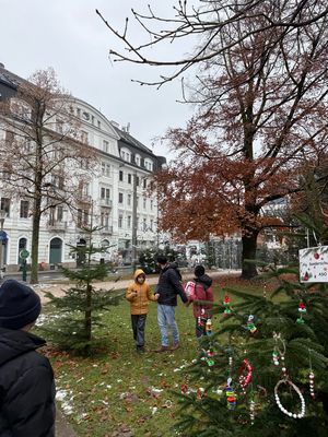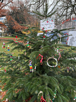 Am 26.11.2025 machten sich nahezu alle Klassen mit dem Bus auf den Weg in die Stadt, um die Bäume vor Ort zu schmücken. Mit großer Mühe und viel Freude wurden Christbaumkugeln, Sterne und andere Kunstwerke liebevoll an den Bäumen angebracht.