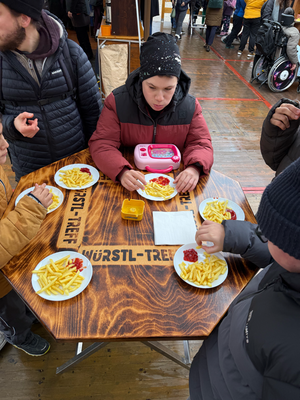 Nach der geleisteten Arbeit hatten sich alle eine kleine Stärkung verdient: Beim Würstltreff genossen die Schüler ihre heiß ersehnten Pommes mit Ketchup. Zusätzlich überraschte die Organisation der Schmückaktion unsere Kinder noch mit Mannerwaffeln als süßes Dankeschön.